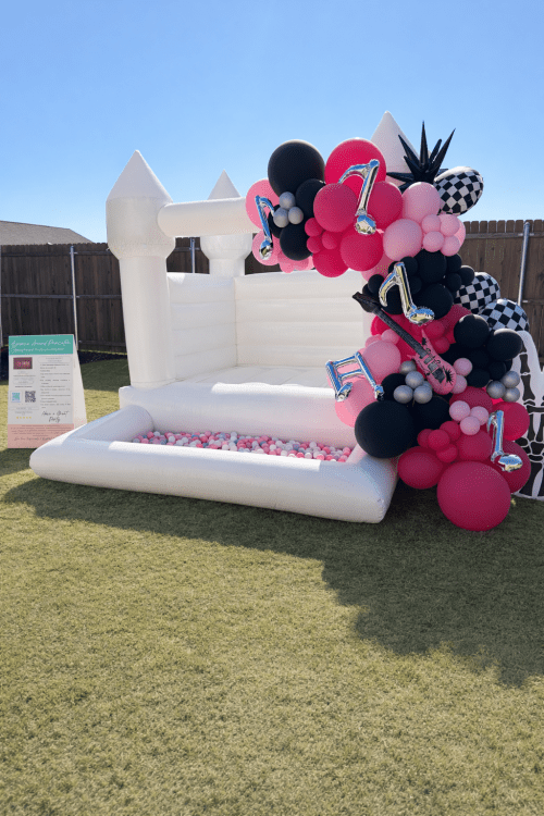 Take your bounce house setup to the next level with our Deluxe Balloon Add-On, designed to create a polished, photo-ready look for your celebration. This upgrade features a full, organic balloon arrangement styled directly onto the small bounce house for maximum visual impact.